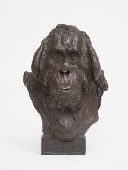 For the first time, the exhibition shows almost the entire important private Frankfurt collection of Carlo Giersch and is supplemented by numerous loans from Berlin, Hamburg, Hanau and Leipzig. The presentation extends across almost all areas of the Liebieghaus and places Gaul’s work in a multifaceted dialogue with the collection. A particular highlight is the larger-than-life eagle in the museum garden, which the artist originally created for the Kaiser Wilhelm National Monument in Berlin. Unlike traditional heroic depictions, the bird is shown here landing on its nest—an impressive example of Gaul’s artistic programme of replacing the animal’s political symbolism with its natural behaviour. His work aligns with contemporary scientific research and the study of animal psychology, such as that of Charles Darwin. This is particularly evident in the juxtaposition of Gaul’s 1895 _Portrait of the Orangutan ‘”Jumbo” _ (1895) with an ancient portrait of the Roman emperor and philosopher Marcus Aurelius (after 169 AD).